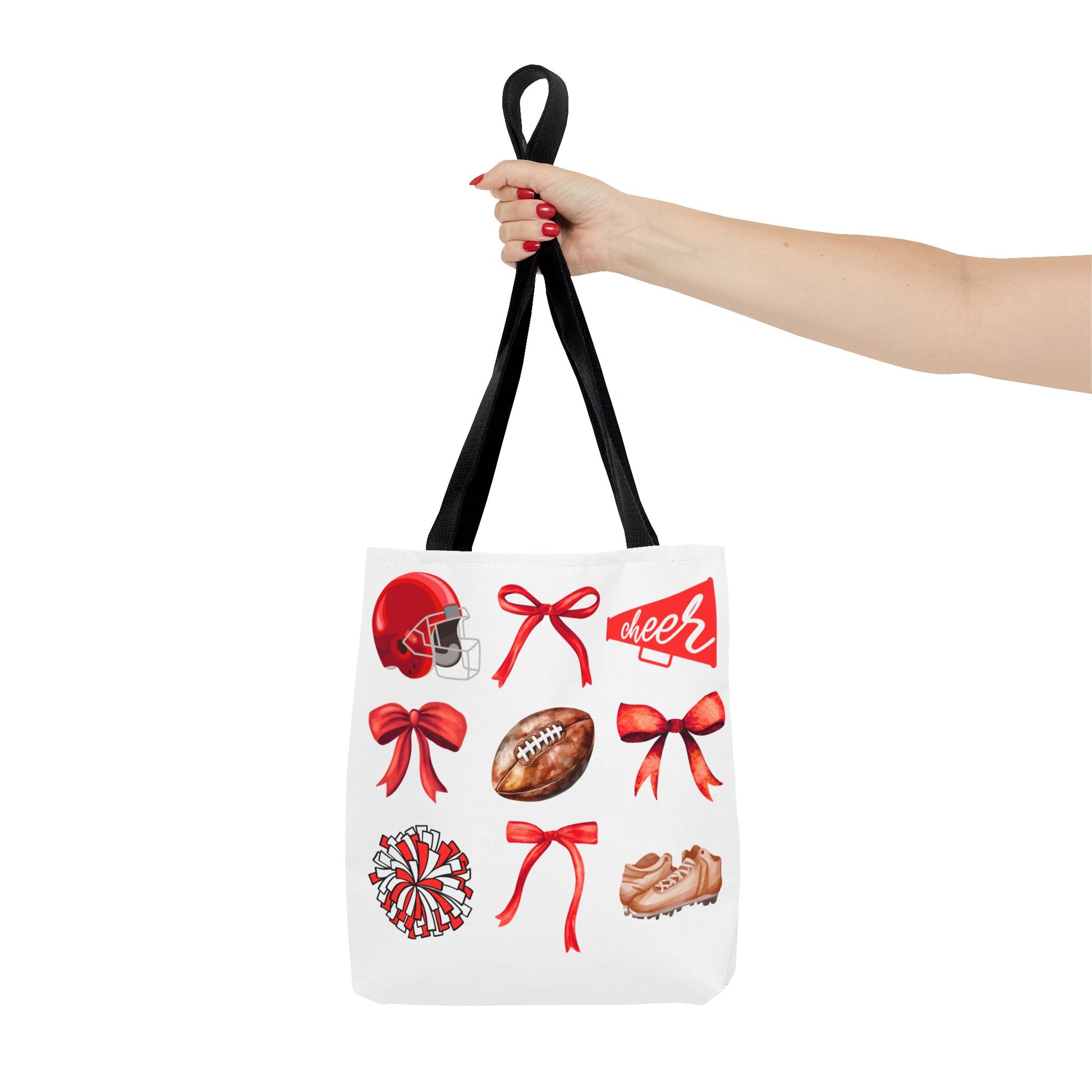 Introducing our vibrant Tote Bag, designed for sports enthusiasts and celebrators of all things cheerful! This stylish accessory showcases a playful pattern of cheer items, making it the perfect companion for game days, sports events, or cheerleading practice. With its spacious design and strong construction, this tote is not only fashionable but also functional, allowing you to easily carry your essentials while showing off your spirit. Whether you’re headed to a tailgate party or a casual outing, this tote will elevate your ensemble and express your fun personality. Ideal as a gift for cheerleaders, sports fans, or anyone looking to add a splash of joy to their day! Perfect for holidays like Back to School, team celebrations, and sporting events!